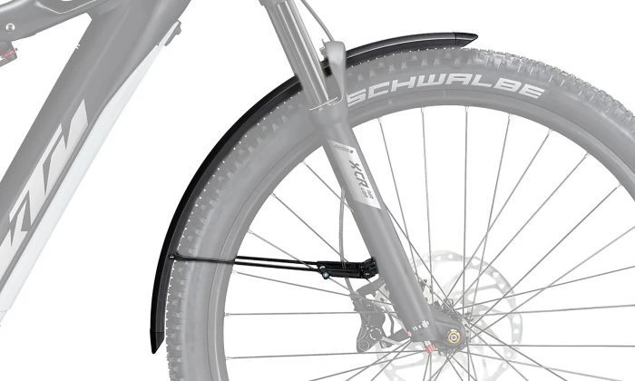 Garde-boue avant original pour les vélos électriques KTM Macina Mighty / Race / Action et E-Cross avec fourche SR-Suntour. Avec haubans & et jeu de vis pour un montage sûr et facile.
